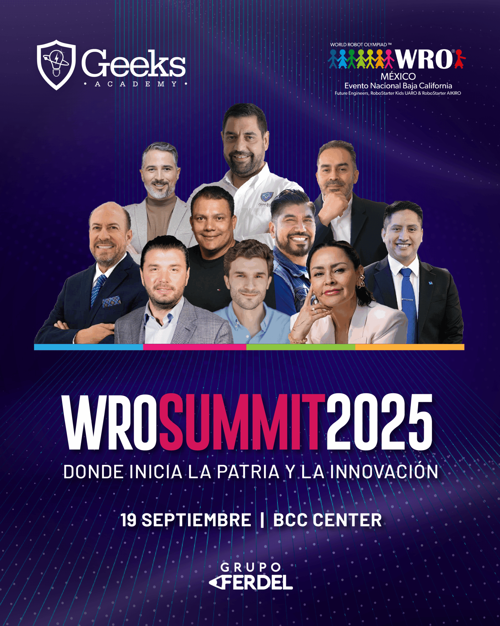 El WRO Summit 2025 reunirá a líderes de la industria, instituciones educativas, emprendedores y organizaciones que apuestan por la innovación, la tecnología y la formación de talento en Baja California. Será un espacio único para generar alianzas estratégicas, impulsar proyectos de alto impacto y posicionar a tu marca frente a una audiencia nacional e internacional. Al registrarte, podrás conocer a detalle los paquetes de patrocinio, beneficios exclusivos y oportunidades de visibilidad que harán que tu organización forme parte activa de este gran movimiento.